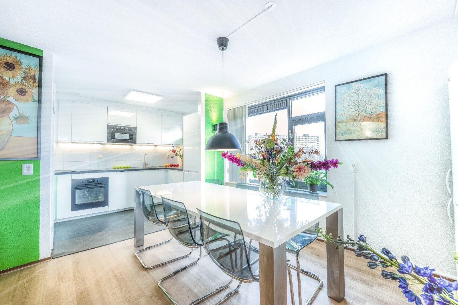 Dit rustige, luxe en volledig gemeubileerde appartement met 4 slaapkamers (98 m²) is gelegen nabij de Erasmus Universiteit Rotterdam, in een hoogwaardige woonwijk.